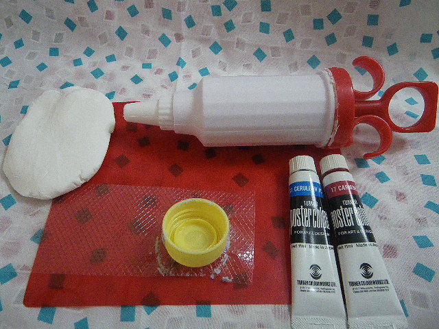 紙粘土に少量の水を混ぜ、角が立つほど練る。