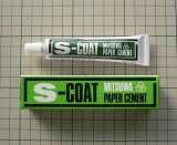 ペーパーセメントはデザイン関係などで使われる仮止め用の接着剤です。画材店などでお求め下さい。両面に塗るタイプと片面塗りタイプの二種類がありますけれど、ここでは片面塗りタイプを使います。 この接着剤は長期間接着したままには出来ませんので、他の接着剤と混用しないように注意して下さい。