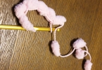 3玉使用で幅13cm長さ125cmに出来上がります。 幅や長さは好みに合わせて調節してください。 プードルモールでの作成時はポンポンが小さく量も少ないのでご注意ください