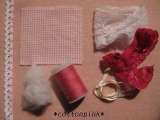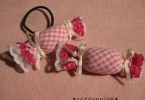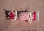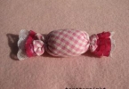 少しだけ残った生地に、あり合わせのレースたちを集めてミシンでくっつけ くるっとまいて、綿をつめこみ、キャンディに仕立てました。