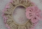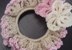 シュシュに2段で編める簡単な花モチーフを付けてみました♪