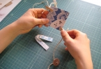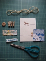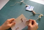 ポストカードなど大きく、重いものは下の方につるしてバランスよく。麻ひもの長さやアイテムの数で雰囲気が変わるので、いろいろ試してみてください。
