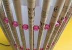 新聞紙ライト 「フランス語新聞でおしゃれにライトアップ」 新聞を丸めて赤いビーズと交互にワイヤーに通せば・・・ 「明るいNEWS」 の出来上がり。 エキサイトブログ http://sumippy.exblog.jp/7565925/ 掲載中!