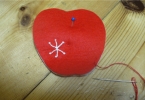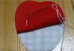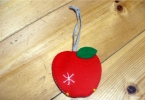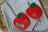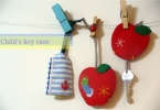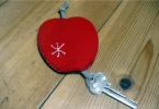 2枚を縫い合わせるときに、途中で鍵を挟むことを忘れずに!後からでも差し込めますがちょっと面倒です。紐の長さは、りんごの大きさプラス結び目くらいが丁度いいです^^。