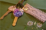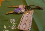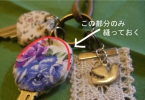 鍵をお気に入りの布で包んでみました。コットンレースやチャームもプラスして可愛くコーディネイト。触り心地もいいし、ひと目で必要な鍵かわかるから便利です。