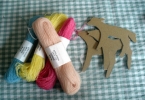 羊毛刺繍糸の糸巻きを、小羊の形で作ってみました。耳のところには刻印ならぬ色番号を付けています。沢山出来上がったら、ケースも柵の形にしたくなってくるかも♪