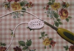 カバーなので、ちょっとしっかりさせようと指定より細いレース針を使っています。ご自身の手加減で、針は調整してください。