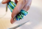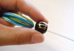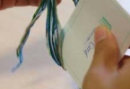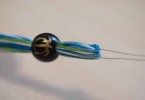 ウッドビーズの穴の大きさに合わせて、刺繍糸の本数を変えてみてください。 ウッドビーズの穴をやっと通るくらいの糸の束がオススメです。