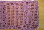 レース編みが完了後、アイロンをあて、2枚の長さを均等にすると、ショールへのまつり縫いが楽です。