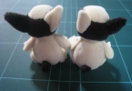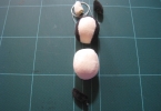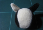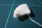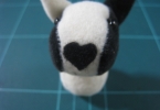 顔のパーツをゴロゴロと、縦長に丸を伸ばして、目玉のビーズを少しきつく引き気味につけます。
