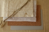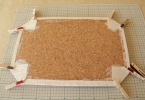 角のカット、割りピンやワイヤー、ブレード装飾、裏地の布貼りを省略すると より手軽に作れます。 コルク板と厚紙を貼り合せた後は反りやすいので、 しばらくクリップでとめておきます。
