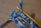 縁編みパッチンピンhttp://atelier.woman.excite.co.jp/creation/12250.htmlのアレンジで、布を使って編んでみました。