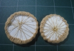 糸を引いたり、ギャザーを寄せたり、後ろは大変なことになっていますが、一生懸命やっておくときれいな出来上がりになります。 糸を引いた側の、一番外側1mmの所がキレイにできているかがポイントです。 山折になったところも、外側1mmの所を小さい針目で処理しておくとキレイに出来上がります。
