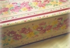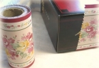 簡単すぎてごめんなさい(><) 壁紙用のボーダーテープを使って、空き箱をカルトナージュ風にリメイクしました。 きっかけは、食品の保存カゴがギュウギュウで、お中元で頂いた缶詰を直す場所がなくて・・・ 箱のままリビングの隅に置いています。。 中がカニ缶とは、誰も気づかないはずですが、どうでしょう???