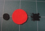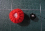 まるを縫って糸を引くときは、一度でやろうとせずに、2~3回に分けて少しずつ縫い縮めましょう。 足の太さが2㎜以下になると、フェルトがほつれるのでむきません。