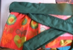 ヴィンテージの生地は、時には様々な形をしています。 今回出会った生地は細長い生地。 これを上手に胸当てとスカートに使った可愛い子供用エプロンです。