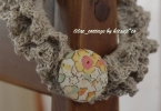 甘すぎない、大人可愛いシュシュが作りたくてデザインを考えました。 リネン100%の糸でシュシュを編み、リネン布にフォークロア調のステッチを施したくるみボタンをプラスしました。