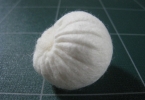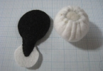上部に乗せるフェルトは、ふわりと乗せたじょうたいで縫ってゆきます。(あとで綿を入れるから、あまり引っ張り過ぎないでね)