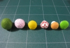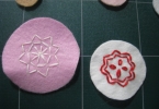 上にもかきましたが、厚紙が1/2で作ったものは、かさが開いた感じになるので、綿は少なめに入れると、きれいに出来ます。 円を縫うときは、ほんとうに、ぶつぶつ縫ったほうが上手く出来ますよ。