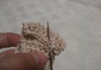 編み地をひっくりかえして前段で編み残した半目を拾って73目こま編み。