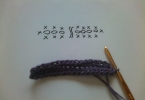 こま編みで最終1段編みます。後ろ中心にきたら鎖編みでボタンループを作ります。鎖の長さはボタンにかけてみて調節。