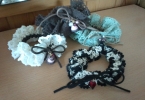 レースに革ひもを通すだけ!の超簡単なのに可愛いシュシュです。 小学生のお嬢さん、夏休みの作品にいかが?