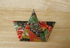 ひなまつりには陶器や和布、ガラス、、、色々と違った小さなお雛様を飾ります。 その中の一つ、千代紙のお雛様は毎年新しく折って仲間に入れてます。