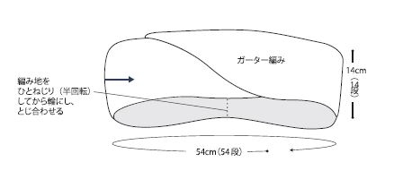 毛足が長いので編み目がわかりにくいですがガーター編みの畝に沿って段数を数えれば心配ありません。頭周りのサイズは段数を増減して調節してください。