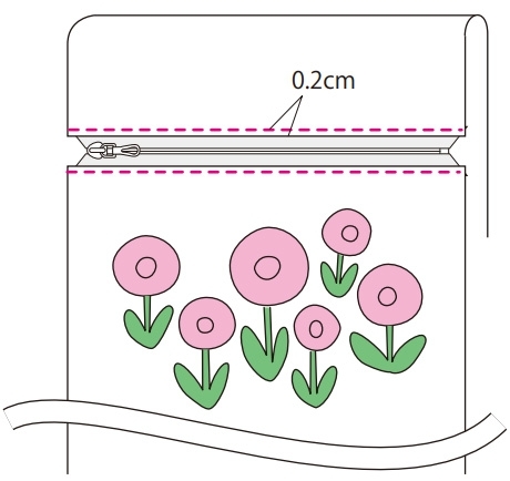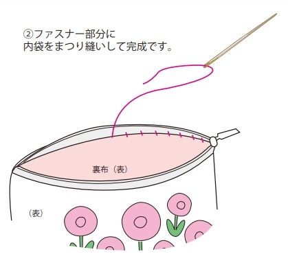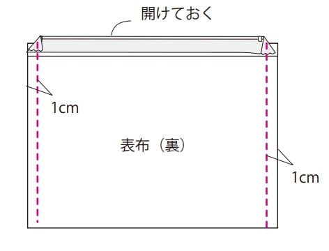 ファスナーの四隅を裏側に折って仮止めしておきます。