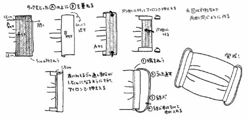 マスクゴムの長さは25㎝ずつでとっていますが使う人に合わせて調整してください。