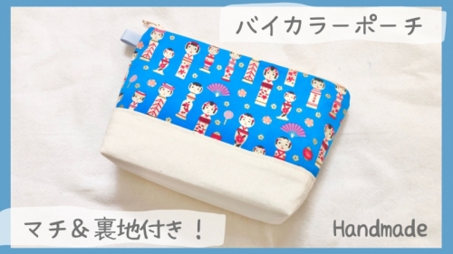 【ポーチ】マチ&裏地付きのバイカラーポーチ