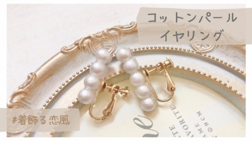 コットンパール風ビーズを使ったイヤリングの作り方の紹介です! みなさんもぜひ作ってみてください(^^) ※レジン作品を制作する際は換気をし、手袋を付けることをおすすめします。
