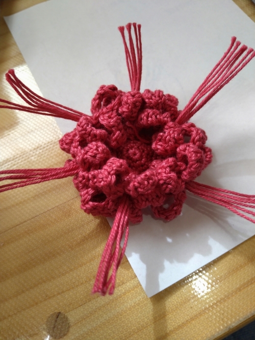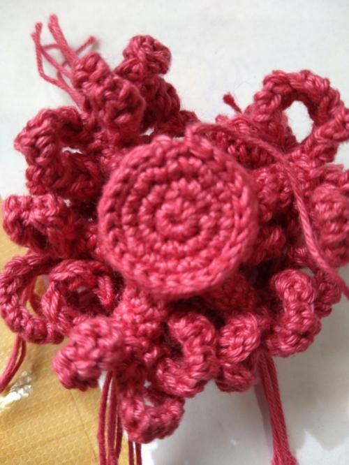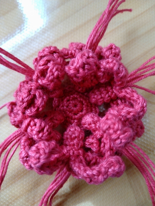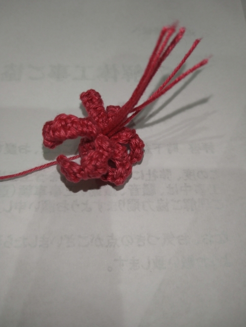 花を編み込むときが難しいかもしれないです 編み込んだあとの糸端を引っ張って土台につけたあと ボンドで糸を固定するといいかも