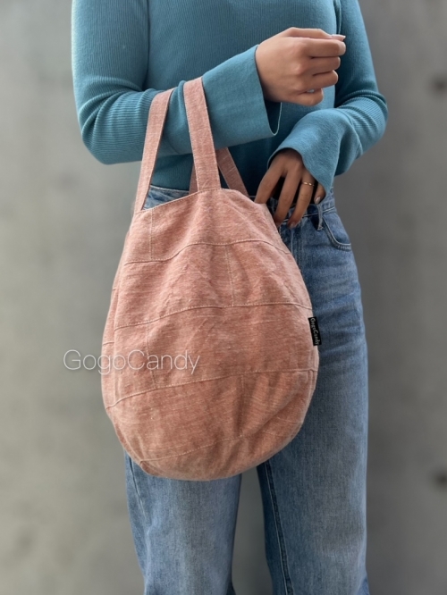 継ぎ接ぎした生地にステッチをあしらい、丸い形を表現しました。 蜂蜜のツボみたいな形から”honeyPot”とステッチをあしらったことで”Stitch”を組み合わせて”ぽっちバッグ”とネーミングしました🐝🍯 持ち手はあえてクロスしてつけて可愛さを表現しています。