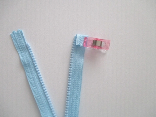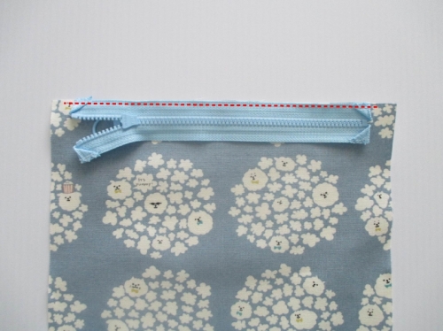 表地にファスナーを裏返して重ねます。