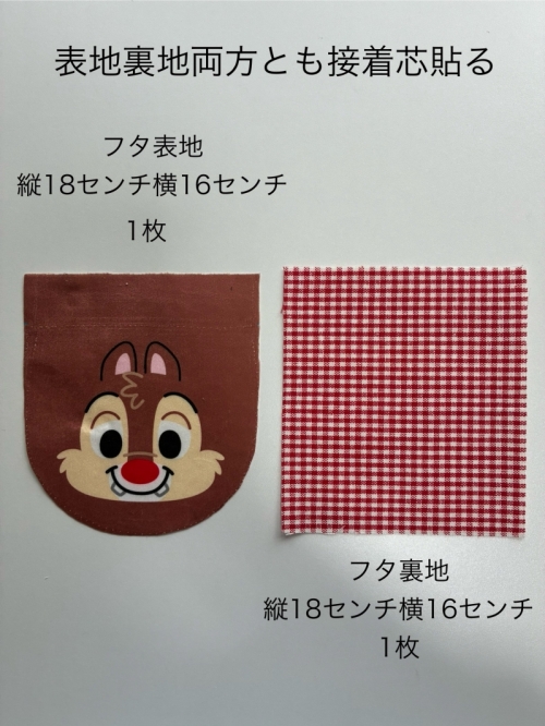 表地は底布や口布を違う生地で作ると可愛いです❤️ フタのカーブは、丸い物をあてて書くと綺麗に書けます。 袋口のゴムは姫にすると、巾着型リュックになります。 紐の場合は、70センチ位の長さ2本です。