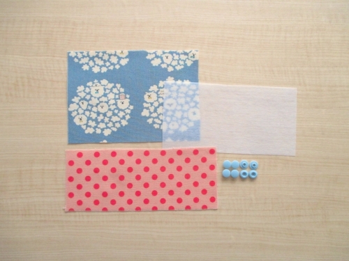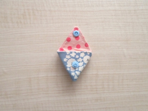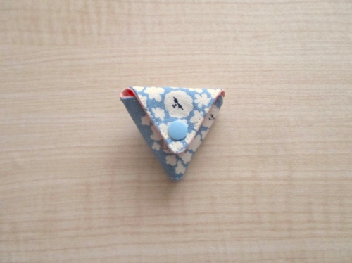 小さいサイズがかわいい、三角のコインケースです。 別ページで少し大きいサイズで作りましたが、もっと小さなハギレを活用できるようにと、このサイズで作ってみました。 小さいですが500円硬貨は入る大きさです。 簡単に作れるように、今回は道具のいらないワンタッチで付けられるボタンを使用しています。 型紙はダウンロードしてお使いください。