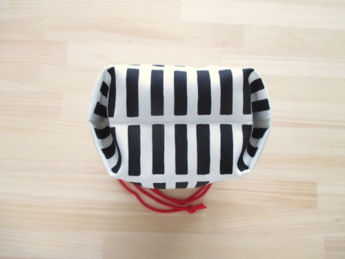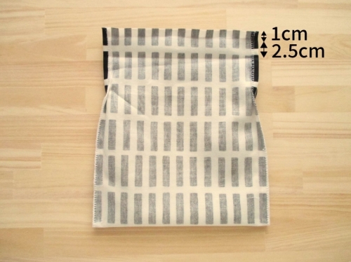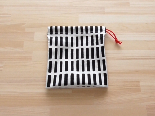 初心者の方におすすめの簡単なコップ袋の作り方です。 マチは折るだけで簡単にできます。 マチをひとつひとつ作る必要がないので、その分の工程が少なくなり、さらに1枚仕立てで作りやすいです。 裏地がないので生地量が抑えられ、洗濯後の乾きも早いです。 両ひもタイプでしっかりと締まります。 布端がほつれないようミシンをかけますが、機種によって設定方法が違いますのでミシンの説明書などでご確認ください。ジグザグ縫いやたち目かがりなどで処理をしてください。 完成サイズ 約縦20cm×横18cm×マチ8cm