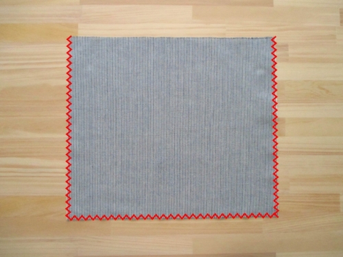 布端がほつれないようミシンをかけますが、機種によって設定方法が違いますのでミシンの説明書などでご確認ください。 ジグザグ縫いやたち目かがりなどで処理をしてください。
