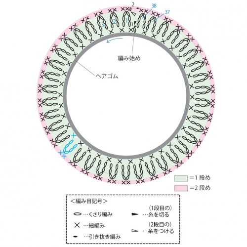 1 <編み方>リング状のヘアゴムに直接編みつけて作ります。