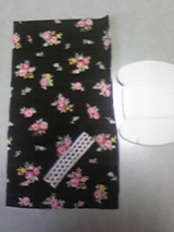 布を半分に折る(裏にして)。ずれないように留め、縫っていく。