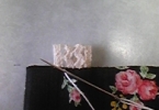 表にしたら、半分におったレースを、開いている口の部分に挟んで、閉じるのと一緒に縫っていく。
