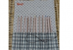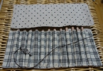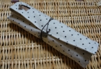 4年半ぶりに画像追加しました(2012.9) キャラクターもののカンケースはちょっと・・・という方におすすめ。 上の布を折りたたんで、くるくる丸めてポンッと机上のガラスの瓶にたてかけると可愛い。 外出時にかばんの隙間に入るし、かばん内でふたが開いてバラバラに・・・なんてこともありません。 PTAや講演会など、静かな会場で、がちゃがちゃ音を出ないということでも、結構重宝しています。