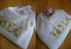 ラッピング代わりの巾着袋です。 紐の通し口がリボンなのでとても簡単に出来上がります。 アイロンプリントでお好きな画像とメッセージを入れます。 プレゼントした後も使ってもらえて、可愛いしとってもエコですよ^^ →http://psalm2301.exblog.jp/9929940/