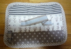 四角いポーチを作りました お裁縫道具の細々した物を入れて持ち運ぶのに マルより四角だと思い、お気に入りのハギレで作りました それぞれの生地に補強の芯を貼り、キルト芯(厚めの綿)も入れて 少しふかふかした感じのポーチが出来ました
