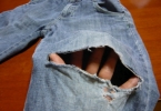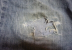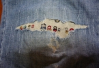 初めに、破れている箇所だけではなく、これから破れそうな箇所も押さえておくと安心ですね。 縫い糸を黄色など目立つ色にしてみると、リメイクっぽくなくていいですよ。