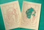 切り絵と言えば黒い紙を使って輪郭線を切り抜くことが多いですけれど、明るい色の紙を使えば裏にそのまま下書きをすることが出来ます。スキャナー付きのプリンターをお持ちでしたら、下絵をコピーして紙にプリントすることも出来ますので、手軽に切り絵を楽しんでみましょう。