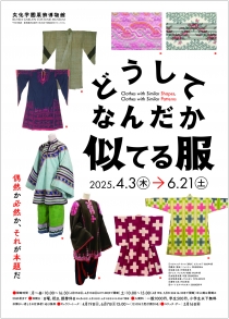 - 世界のさまざまな地域の衣服を見ると、地図上では離れた地域であるにもかかわらず、文化や国を超えて形や模様が似ているものがいくつか見られます。本展では服飾博物館の所蔵品の中から約30か国の服や染織品を選び、「かたちが似てる」、「もようが似てる」に分けて紹介します。