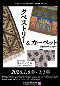 - 私たちのまわりには、服飾以外にも生活の中で使用されるさまざまな染織品があり、それらは暮らしに彩りを与えています。本展では、壁や空間に掛けるタペストリーと、屋内やテントで敷くカーペットに注目し、世界各地の掛布と敷物を紹介します。