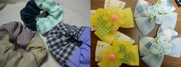 ![]() 人気のシュシュ、リボンアクセサリー。柄やパーツの合わせ方も楽しい。 |